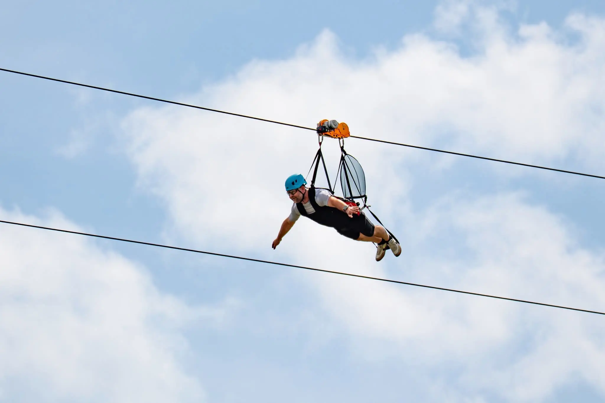Zjazd Tyrolski w Ośrodku Narciarskim BIESZCZAD.ski Wańkowa to niezapomniana przygoda dla miłośników adrenaliny! To najdłuższa w Europie Środkowo-Wschodniej dwulinowa tyrolka – 1350 metrów długości, a miejscami nawet 48 metrów nad ziemią!